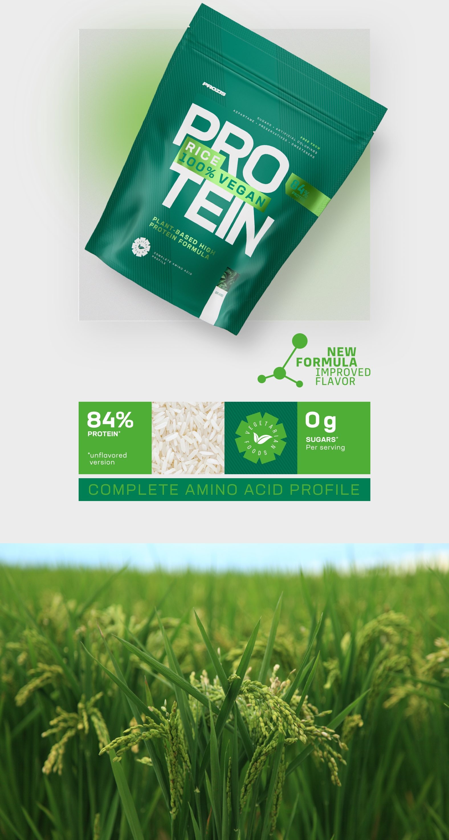 Si eres deportista con requisitos específicos de proteínas, si sigues una dieta vegetariana o vegana o si simplemente quieres consumir menos productos de origen animal, 100% Proteína de arroz de Prozis es el suplemento proteico completo, saludable y delicioso que necesitas.